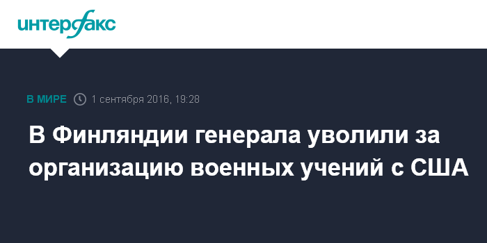 Генерал был уволен за организацию в 2015 году на территории Финляндии несанкционированных президентом, парламентом и правительством военных учений с армией США, сообщила в четверг газета Iltalehti.