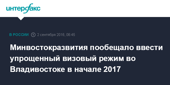 Ранее глава Минвостокразвития РФ Александр Галушка сообщил, что упрощенный визовый режим планируется ввести в 2017 году. "Мы работаем над тем, чтобы в 2017 году режим заработал", - сказал министр.