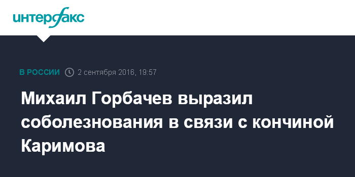 Горбачев выразил сожаления в связи со смертью Каримова. Он отметил, что "тот путь, по которому пойдет Узбекистан, должен выбрать сам народ".