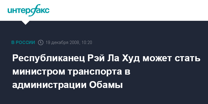 Республиканец Рэй Ла Худ может стать министром транспорта в администрации Обамы