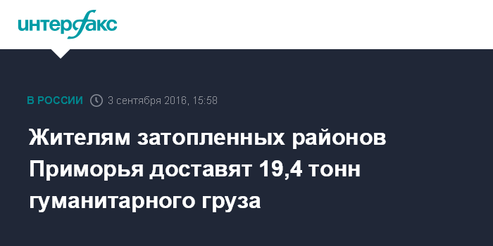 Жителям затопленных районов Приморья доставят 19,4 тонн гуманитарного груза