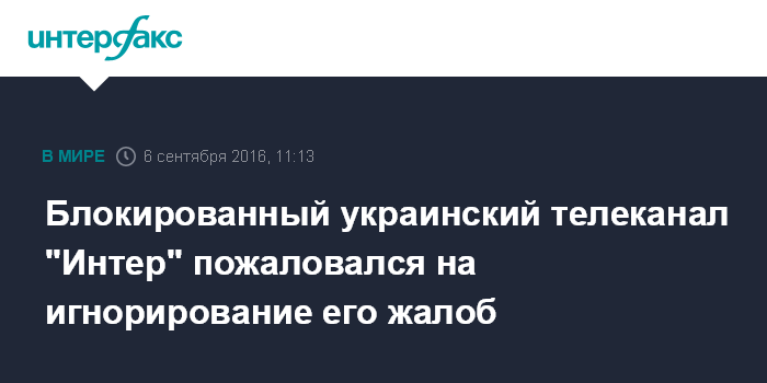Блокированный украинский телеканал "Интер" пожаловался на игнорирование его жалоб