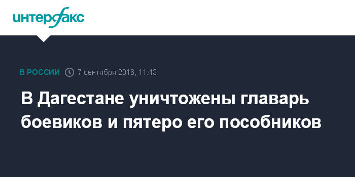 Москва. 7 сентября. INTERFAX.RU - Спецслужбы в Дагестане в ходе контртеррористической операции в окрестностях Избербаша и в Махачкале уничтожили шестерых бандитов, в том числе главаря бандгруппы Магомеда Халимбекова, сообщили в информцентре Национального антитеррористического комитета.