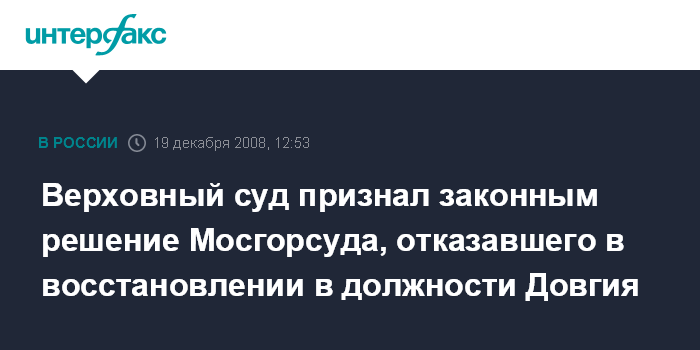 Таким образом Верховный суд признал законным решение Мосгорсуда, который ранее отказался восстановить Довгия в должности.
