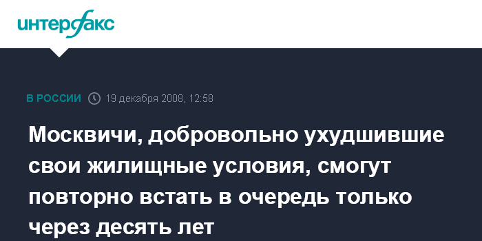 Москвичи, добровольно ухудшившие свои жилищные условия, смогут повторно встать в очередь только через десять лет