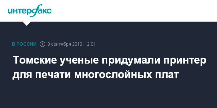 Москва. 8 сентября. INTERFAX.RU - Разработчики СКБ "Смена" Томского государственного университета систем управления и радиоэлектроники (ТУСУР) созали макет устройства, позволяющего печатать многослойные платы, сообщает пресс-служба вуза.