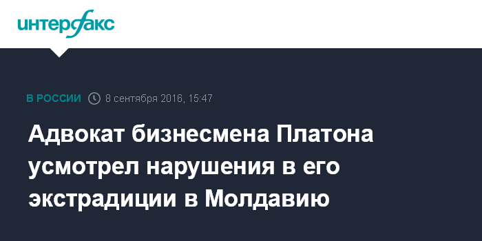 Москва. 8 сентября. INTERFAX.RU - Экстрадиция молдавского бизнесмена Вячеслава Платона из Киева в Кишинев прошла с грубыми нарушениями, заявил его адвокат Илья Новиков.