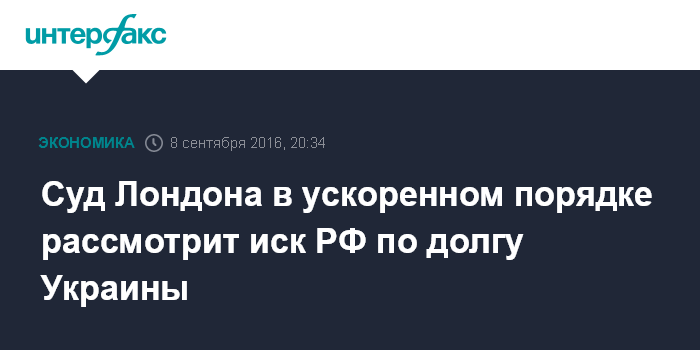 Москва. 8 сентября. INTERFAX.RU - Высокий суд Лондона одобрил ходатайство о вынесении решения по поводу облигаций Украины, принадлежащих РФ, в ускоренном порядке.