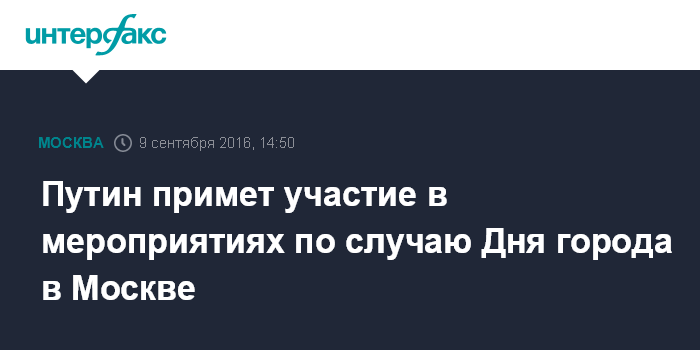Путин примет участие в мероприятиях по случаю Дня города в Москве