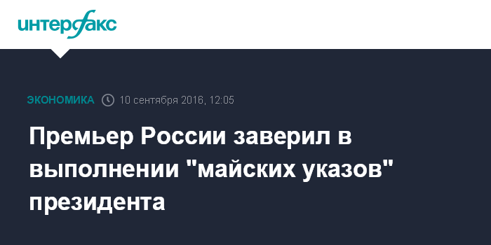 Москва. 10 сентября. INTERFAX.RU - Государство в состоянии выполнить майские указы президента России, принятые в 2012 году, даже в изменившихся экономических условиях, считает премьер-министр РФ Дмитрий Медведев.