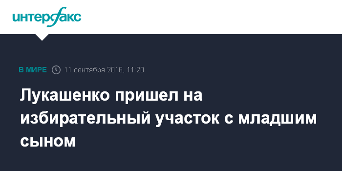 Москва. 11 сентября. INTERFAX.RU - Президент Белоруссии Александр Лукашенко вместе со своим младшим сыном Николаем в воскресенье прибыл на один из избирательных участков Минска, где проголосовал на выборах депутатов Палаты представителей Национального собрания.