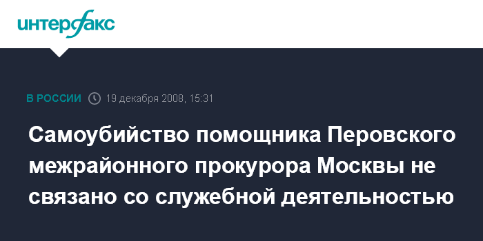 Москва. 19 декабря. INTERFAX.RU - Следственный комитет при прокуратуре проводит проверку по факту самоубийства помощника Перовского межрайонного прокурора столицы Алексея Дзимаева.
