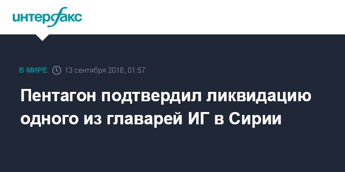 Москва. 13 сентября. INTERFAX.RU - Министерство обороны США подтвердило гибель одного из главарей группировки ИГ (запрещена в РФ) Абу Мухаммеда аль-Аднани в Сирии.