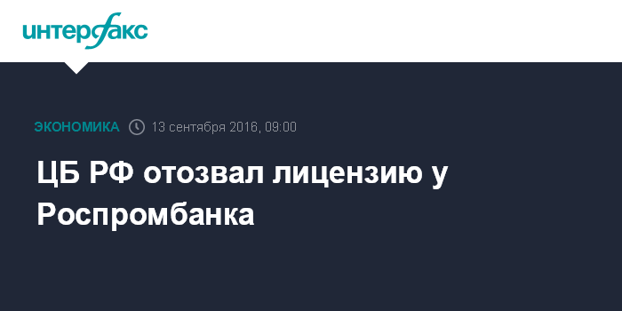 ЦБ РФ отозвал лицензию у Роспромбанка