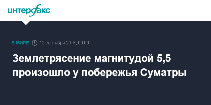 Землетрясение магнитудой 5,5 произошло у побережья Суматры