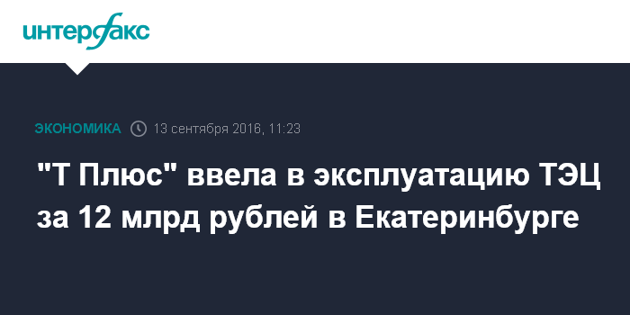 Москва. 13 сентября. INTERFAX.RU - ПАО "Т Плюс" ввело в эксплуатацию ТЭЦ "Академическая" в Екатеринбурге, сообщил корреспондент "Интерфакса" с церемонии открытия энергообъекта.