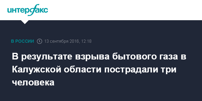 Москва. 13 сентября. INTERFAX.RU - В результате взрыва бытового газа в городе Малоярославец Калужской области кроме двух живущих в квартире девушек пострадал их сосед, сообщает СУ СКР по региону.