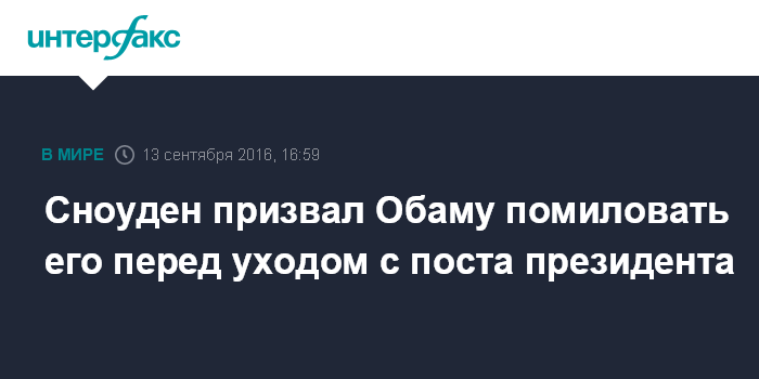 Москва. 13 сентября. INTERFAX.RU - Экс-сотрудник ЦРУ США Эдвард Сноуден, который в настоящее время проживает в России, рассчитывает, что американский президент Барак Обама помилует его перед тем, как истечет его срок на посту главы государства.