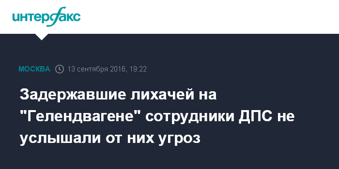 Москва. 13 сентября. INTERFAX.RU - Сотрудники ДПС, участвовавшие в задержании участников гонки на "Гелендвагене" в Москве, в том числе сына вице-президента "ЛУКОЙЛа" Руслана Шамсуарова, заявили, что не слышали от них угроз в адрес сотрудников правоохранительных органов.
