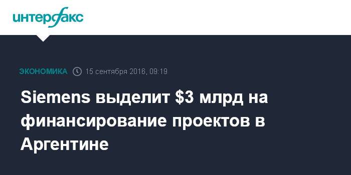 Siemens выделит $3 млрд на финансирование проектов в Аргентине