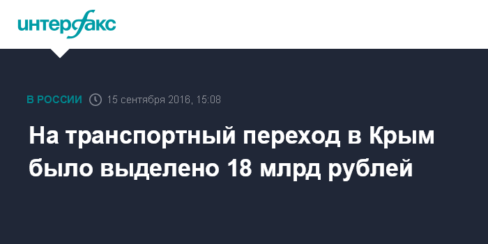 Москва. 15 сентября. INTERFAX.RU - На цели транспортного сообщения с Крымом выделено порядка 18 млрд рублей, и теперь вопрос в том, как они будут осваиваться, заявил президент РФ Владимир Путин.
