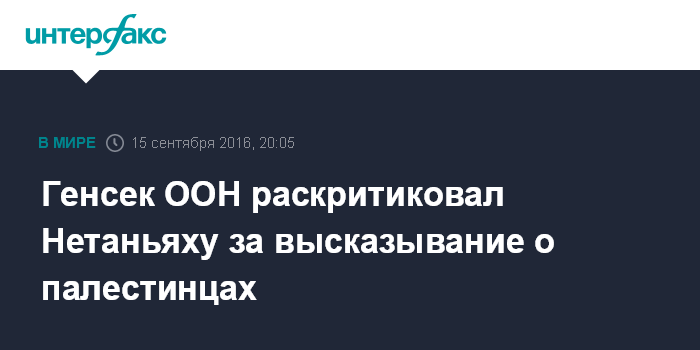 Москва. 15 сентября. INTERFAX.RU - Генсек ООН Пан Ги Мун подверг критике слова израильского премьер-министра Беньямина Нетаньяху в адрес палестинского руководства, назвав их "неприемлемыми и возмутительными".