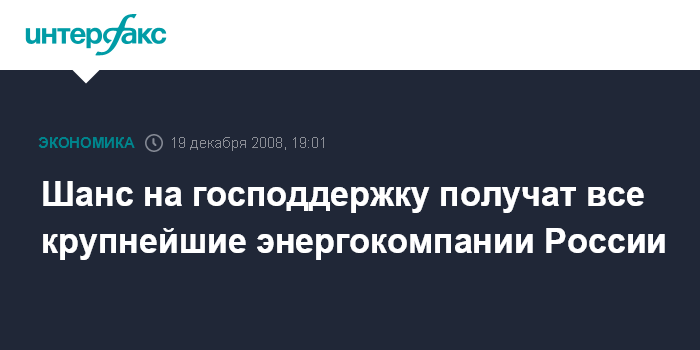 Шанс на господдержку получат все крупнейшие энергокомпании России