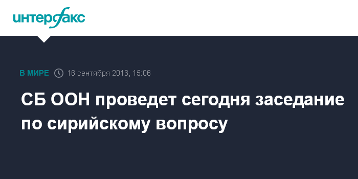 Москва. 16 сентября. INTERFAX.RU - Заседание СБ ООН для обсуждения ситуации в Сирии, назначено на пятницу, сообщили в ООН.