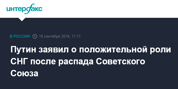 Москва. 16 сентября. INTERFAX.RU - Президент России Владимир Путин положительно оценил роль Содружества Независимых государств после распада СССР.