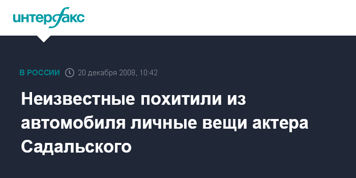Москва. 20 декабря. INTERFAX.RU - В Москве в Северном административном округе ограблен известный актер Станислав Садальский, сообщил "Интерфаксу" в субботу источник в правоохранительных органах города.