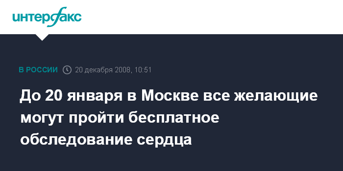 До 20 января в Москве все желающие могут пройти бесплатное обследование сердца