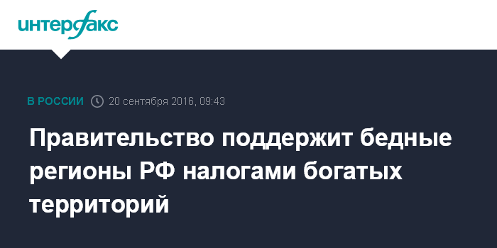 Правительство поддержит бедные регионы РФ налогами богатых территорий