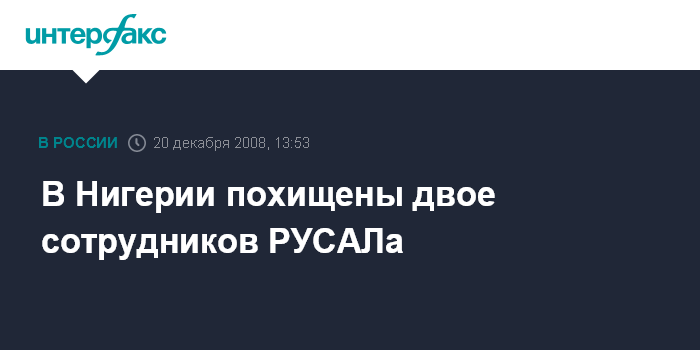 Москва. 20 декабря. INTERFAX.RU - В Нигерии в субботу утром на юге города Икот Абаси произошло вооруженное нападение на поселок, в котором проживают сотрудники российской компании РУСАЛ, работающие на алюминиевом заводе Алскон, сообщила пресс-служба компании.