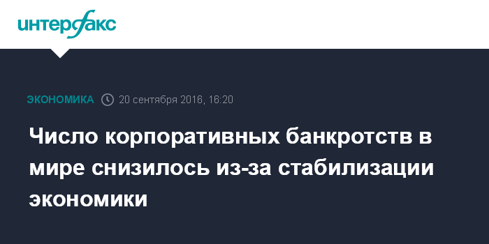 Москва. 20 сентября. INTERFAX.RU - Число корпоративных банкротств в мире, прежде всего в развитых странах, снижается за счет стабилизации ситуации в глобальной экономике, а также сохраняющего доступа компаний к "дешевым" деньгам, свидетельствуют данные американской компании Dun & Bradstreet, крупнейшего мирового поставщика информации о компаниях Dun & Bradstreet за 2015 и первое полугодие 2016 года.