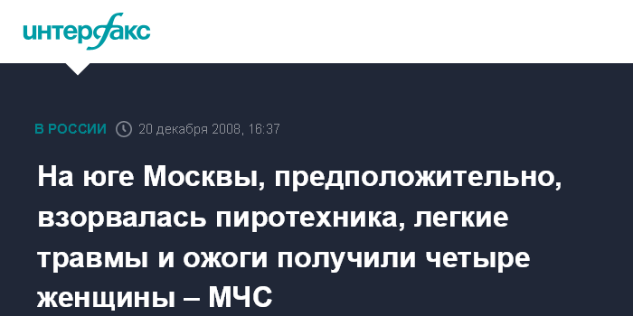 На юге Москвы, предположительно, взорвалась пиротехника, легкие травмы и ожоги получили четыре женщины – МЧС