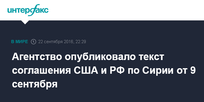 Агентство опубликовало текст соглашения США и РФ по Сирии от 9 сентября