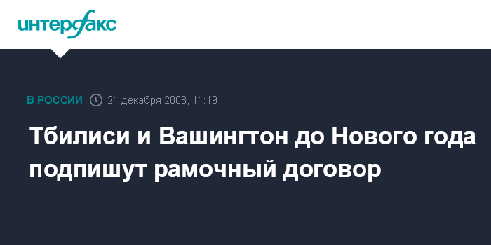 Москва. 21 декабря. INTERFAX.RU - Рамочный договор между США и Грузией, вероятно, будет согласован к 23 декабря, заявил в воскресенье журналистам глава МИД Грузии Григол Вашадзе.