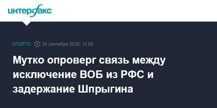 Мутко опроверг связь между исключение ВОБ из РФС и задержание Шпрыгина