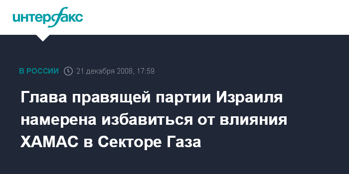 "Государство Израиль и правительство во главе со мной поставят перед собой стратегическую цель свержения режима ХАМАС в секторе Газа", - сказала Ц.Ливни членам центристской израильской партии "Кадима", которую она возглавляет.