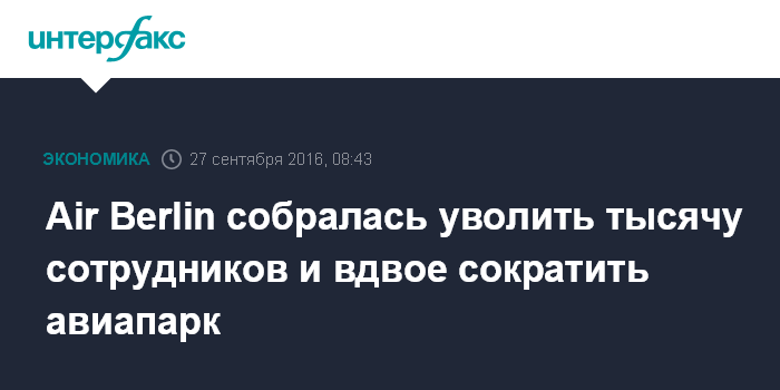 Air Berlin собралась уволить тысячу сотрудников и вдвое сократить авиапарк