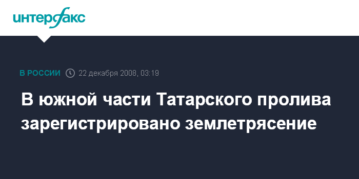 Южно-Сахалинск. 22 декабря. ИНТЕРФАКС - ДАЛЬНИЙ ВОСТОК - Слабое землетрясение зарегистрировано в Татарском проливе в минувшее воскресенье.
