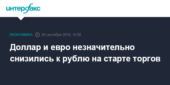 Москва. 28 сентября. INTERFAX.RU - Доллар и евро чуть снизились на "Московской бирже" при открытии торгов в среду, рубль немного укрепился на фоне повышения цен нефти.
