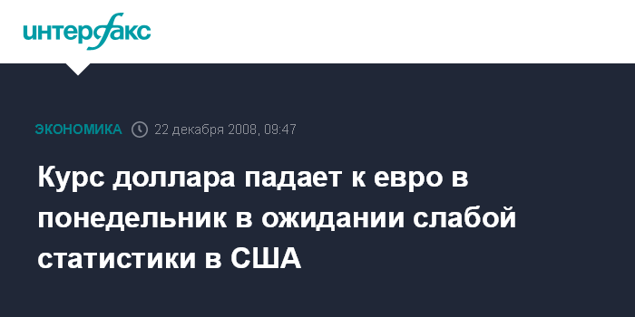 Москва. 22 декабря. INTERFAX.RU - Курс доллара США снижается к евро в ожидании статистики в Соединенных Штатах, которая покажет сокращение потребительских расходов, продаж жилья и заказов на товары длительного пользования, сообщило агентство Bloomberg.