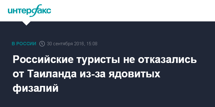 Генеральный директор компании "Латур" Инна Поом отметила, что туристы вообще не интересуются этим вопросом, а директор агентства "Окей Трэвел" в Королеве Татьяна Малькова рассказала, что отказов от туров в Таиланд нет.