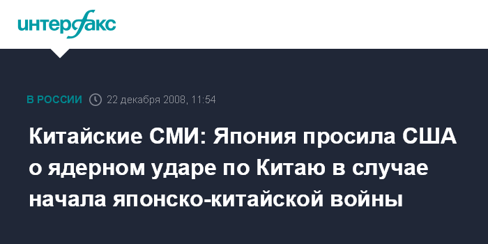 Китайские СМИ: Япония просила США о ядерном ударе по Китаю в случае начала японско-китайской войны