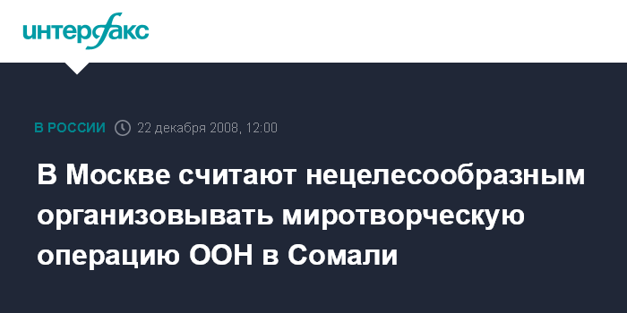 В Москве считают нецелесообразным организовывать миротворческую операцию ООН в Сомали