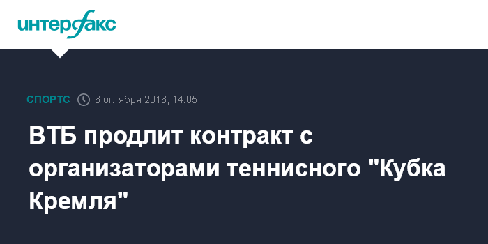 ВТБ продлит контракт с организаторами теннисного "Кубка Кремля"