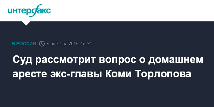 Суд рассмотрит вопрос о домашнем аресте экс-главы Коми Торлопова