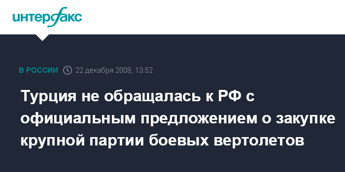 Турция не обращалась к РФ с официальным предложением о закупке крупной партии боевых вертолетов