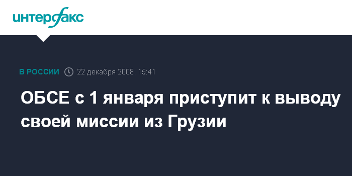 Москва. 22 декабря. INTERFAX.RU - В ОБСЕ приняли в понедельник решение начать с 1 января 2009 г. вывод своей миссии из Грузии.